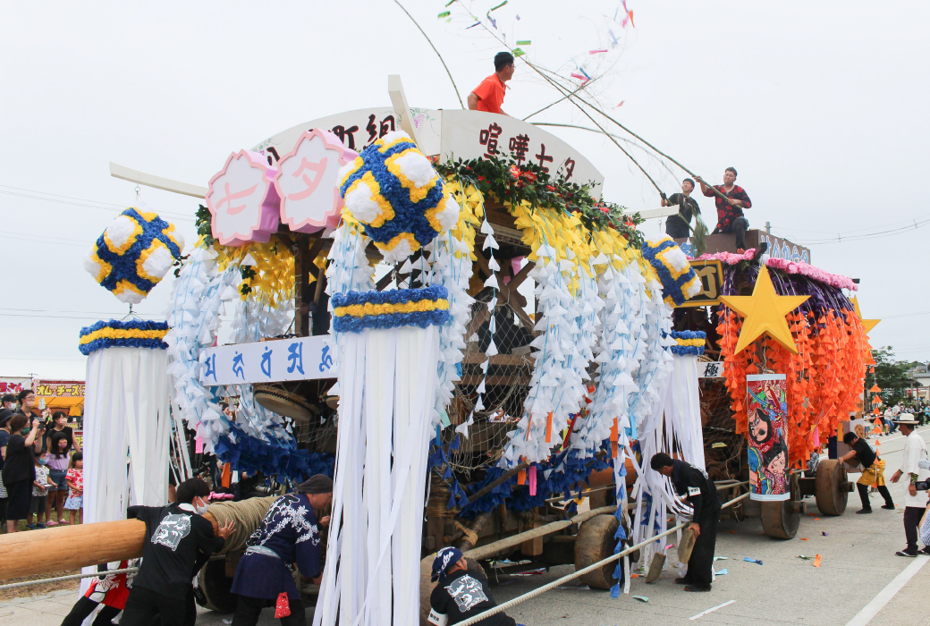 陸前高田市には、高田町の「うごく七夕」と気仙町今泉の「けんか七夕」という独特の祭りが伝わる。うごく七夕は、華やかに飾った山車の中で奏でられるおはやしが幻想的。けんか七夕は、丸太を載せた2台の山車がぶつかり合う勇壮さが人々を魅了する。